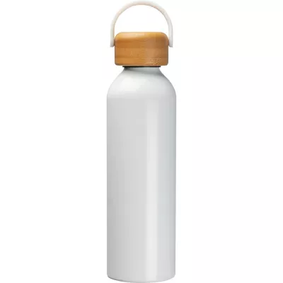 Butelka wykonana z aluminium pochodzącego z recyklingu, o pojemności 600 ml, posiada bambusową zakrętkę z praktycznym uchwytem.