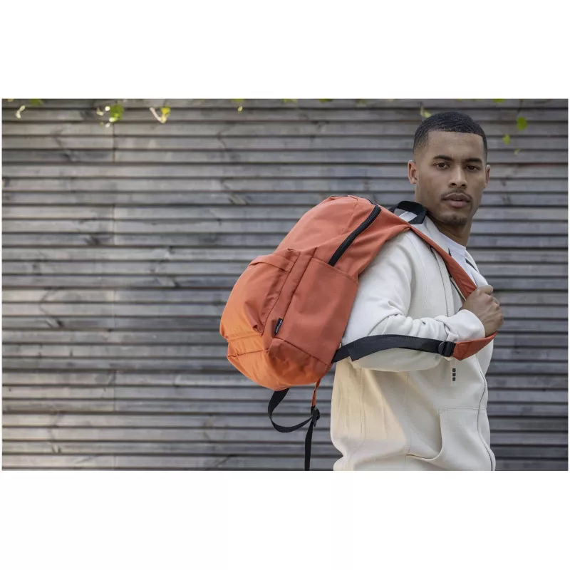 Wykonany z wodoodpornego poliestru z recyklingu z certyfikatem GRS, plecak miejski na laptopa Byron będzie Twoim codziennym towarzyszem w pracy, szkole lub podczas miejskich przygód. Dzięki kompaktowej pojemności 16 litrów i specjalnej, wyściełanej kieszeni na laptopy o przekątnej do 14 cali, torba oferuje praktyczne miejsce do przechowywania i charakteryzuje się czystym, nowoczesnym wzornictwem. Wewnątrz znajdziesz inteligentne kieszenie, które pozwolą Ci utrzymać porządek w swoich rzeczach, podczas gdy dwie kieszenie boczne i kieszeń przednia zapinana na zamek umożliwiają szybki dostęp do najpotrzebniejszych rzeczy. Niezależnie od tego, czy dojeżdżasz do pracy, czy zwiedzasz miasto, ten plecak zapewnia styl, wygodę i funkcjonalność na każdym kroku.