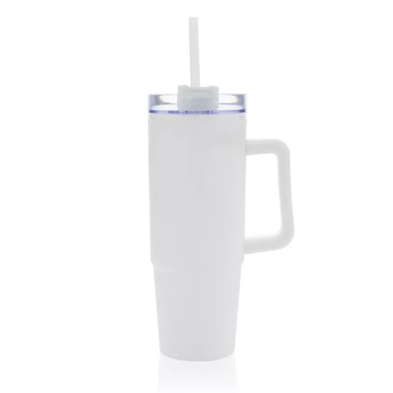 Kubek podróżny 900 ml, ergonomiczny uchwyt, obrotowe wieczko trzema pozycjami (dziubek do picia, otwór na słomkę, zamknięte), szczelny, wykonany z materiałów z recyklingu, całkowita zawartość materiałów obliczona na podstawie wagi całkowitej przedmiotu: 80%, wyłącznie mycie ręczne, w pudełku z papieru kraftowego z certyfikatem FSC®