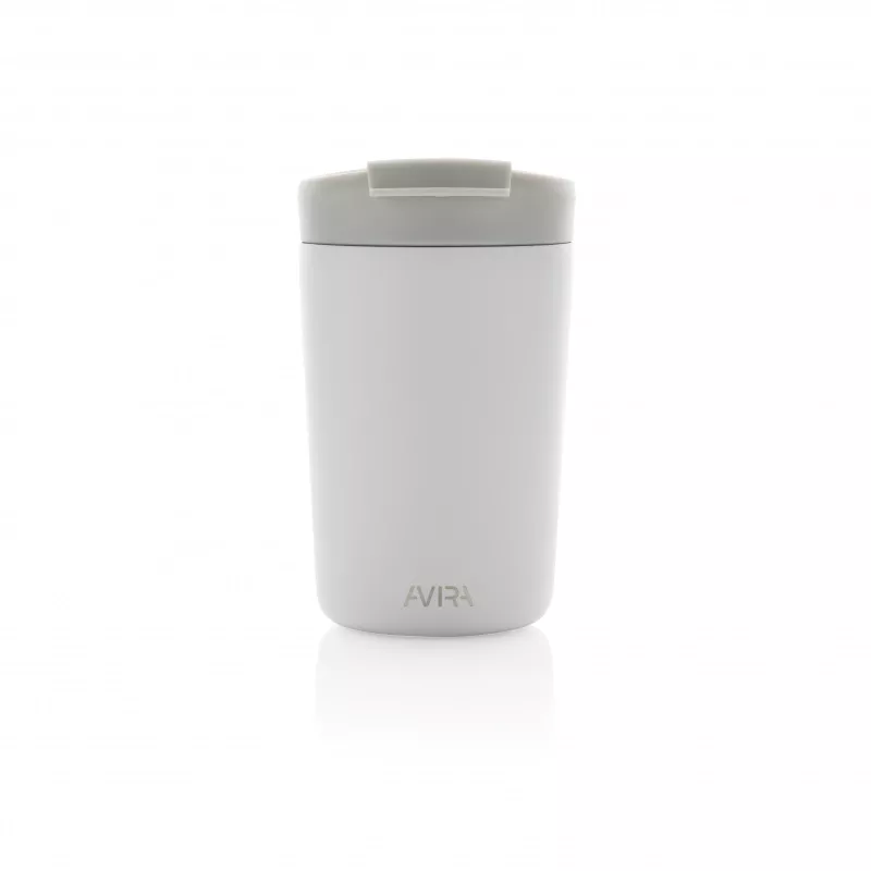 Kubek termiczny 300 ml, podwójne ścianki ze stali nierdzewnej z próżnią pomiędzy, wykonany ze stali nierdzewnej z recyklingu z certyfikatem RCS i z PP z recyklingu, całkowita zawartość materiałów z recyklingu obliczona na podstawie wagi całkowitej przedmiotu: 94%, w pudełku z papieru kraftowego z certyfikatem FSC®, pudełko można wykorzystać jako stojak na telefon lub doniczkę, klasa termiczna: C