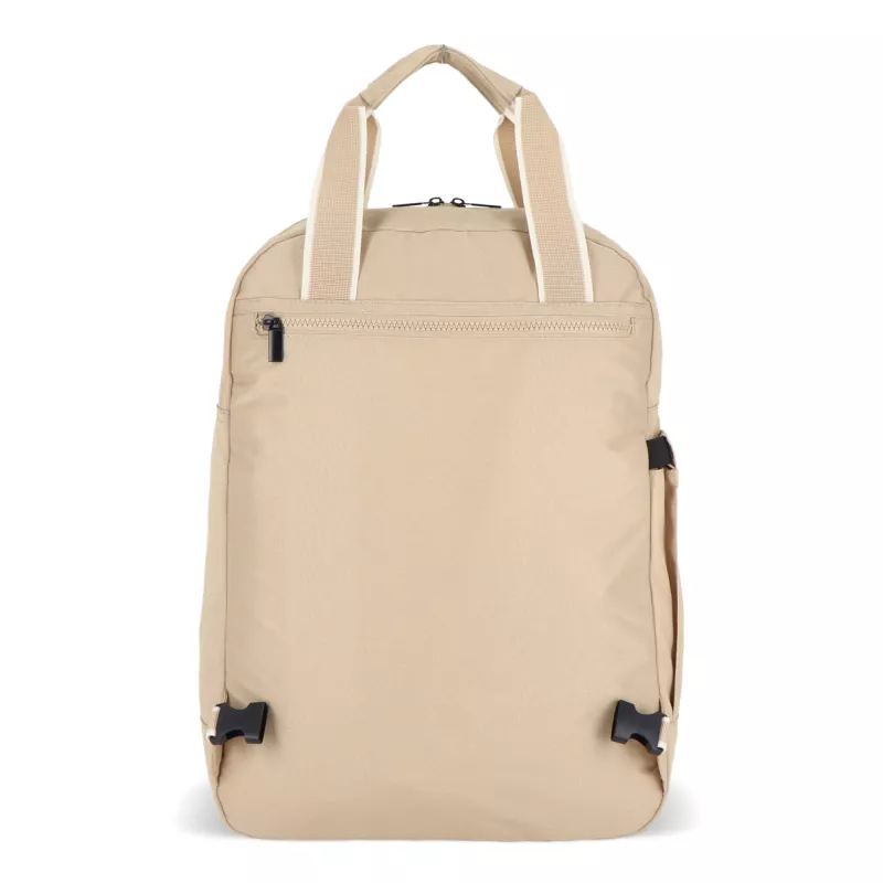 Ten stylowy i praktyczny plecak z serii InSideOut Koli to idealny wybór dla każdego, kto często podróżuje i ceni sobie funkcjonalność i zrównoważony rozwój. Wykonany z przyjaznego dla środowiska rPET, materiału pochodzącego z recyklingu, plecak Koli oferuje nie tylko korzyści dla środowiska, ale także solidną i trwałą jakość. Przestronna komora główna zawiera poręczną przegrodę na laptopa, podczas gdy z przodu znajduje się zapinana na zamek przednia kieszeń, a bok jest wyposażony w elastyczną kieszeń na butelkę lub parasol. Solidny zamek błyskawiczny zapewnia łatwe otwieranie głównej komory i bezpośredni dostęp do zawartości. Przednia kieszeń jest idealna dla firm szukających miejsca na nadruk swojego logo lub nazwy firmy, dzięki czemu torba ta jest doskonałym rozwiązaniem promocyjnym. Umieszczając paski na ramię w tylnej kieszeni, można łatwo przekształcić plecak w torbę. Ta przydatna funkcja, w połączeniu z wytrzymałymi uchwytami, sprawia, że plecak Koli to nie tylko plecak, ale także praktyczna torba.