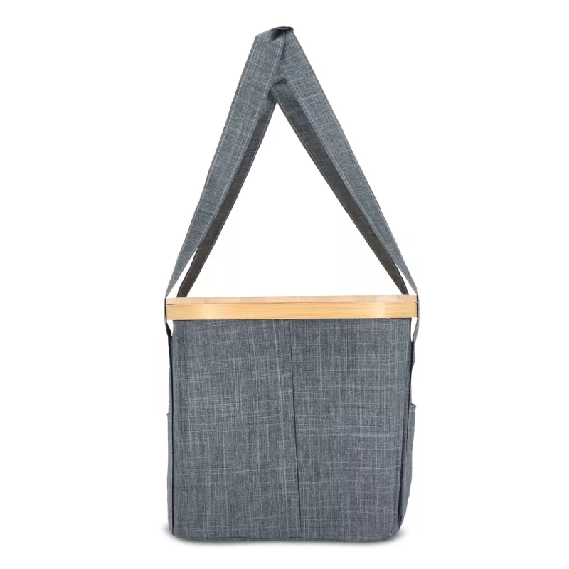 Składany (chłodzący) kosz Sogne od InSideOut to coś więcej niż stylowe rozwiązanie do przechowywania: to wszechstronna torba chłodząca, idealna do aktywności na świeżym powietrzu. Wykonany z materiałów pochodzących z recyklingu i bambusa, Sogne oferuje również praktyczną funkcjonalność. Wewnątrz znajduje się dopasowana torba chłodząca z uchwytem i izolowaną folią, dzięki czemu kosz może być również używany jako torba chłodząca do przechowywania żywności i napojów. Kosz ma bambusową pokrywę, która może również służyć jako deska do krojenia, i jest wyposażony w poręczne przednie i tylne kieszenie zapewniające dodatkowe miejsce do przechowywania. Dzięki wytrzymałym uchwytom koszyk można łatwo zabrać ze sobą w dowolne miejsce, z torbą chłodzącą lub bez niej. Zarówno koszyk, jak i torba chłodząca są składane, co pozwala zaoszczędzić miejsce, gdy nie są używane. Zarówno przednia kieszeń, jak i bambusowa pokrywa oferują miejsce na nadruk lub grawerowanie logo. Krótko mówiąc, Sogne łączy styl, praktyczność i wielofunkcyjność w jednym inteligentnym i zrównoważonym projekcie.