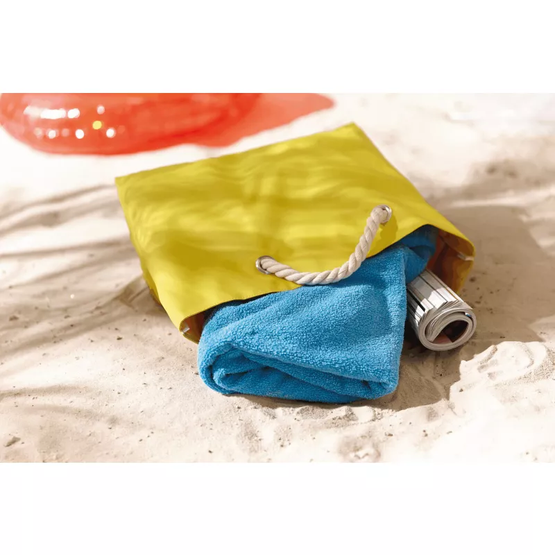 Torba plażowa CAPRI zamykana na rzep, miłe w dotyku bawełniane uchwyty, z metalowymi oczkami.