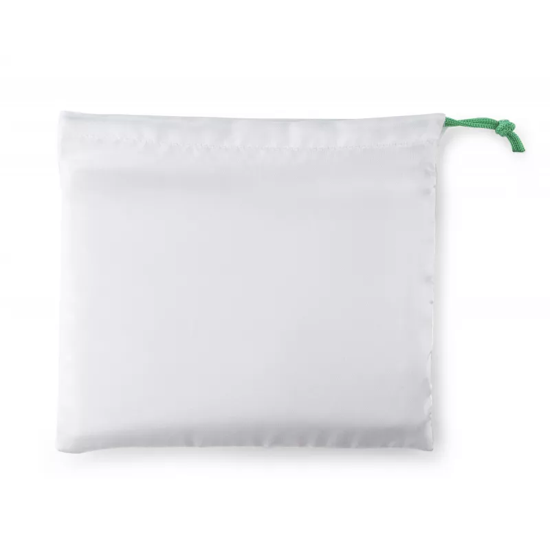 Zestaw worków stanowiący zakupowy niezbędnik w dzisiejszych czasach. Wykonany w idei "less waste" z recyklingowanego poliestru. Zestaw składa się z 2 większych worków w rozmiarze 320 x 340 mm oraz jednego mniejszego w rozmiarze 175 x 150 mm, będącego również etui. Mały woreczek z jednej strony jest wykonany z gładkiego poliestru.